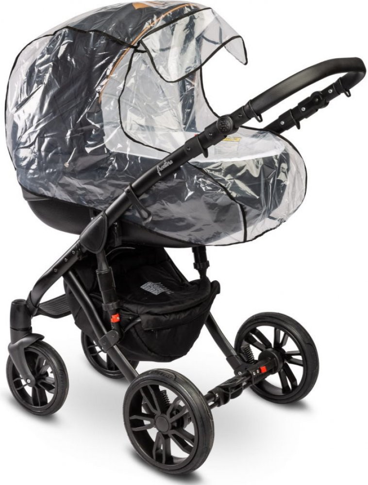 Pláštěnka chrání kočárek i dítě před nepřízní počasí. Vyrobeno ze silné fólie, zcela bezpečné pro dítě, odolné vůči vysokým i nízkým teplotám. Má výřez pro kontakt s miminkem. Fólie byla testována Národním hygienickým ústavem z hlediska kvality materiálů a zpracování. Potah je k dispozici ve třech verzích, aby dokonale seděl na typ kočárku.
