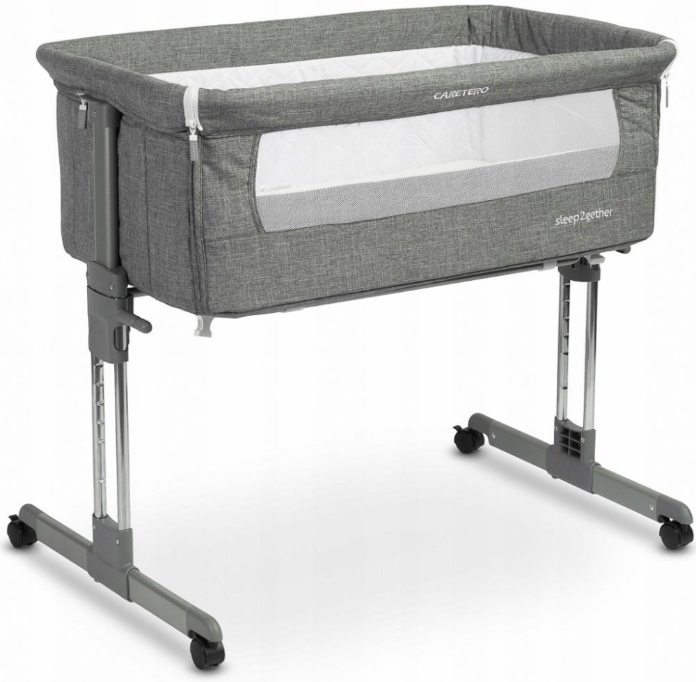 S 7stupňovou regulací výšky, vestavěnými kolečky s brzdou a nastavitelnými nohami lze postýlku snadno přizpůsobit téměř jakékoli posteli.
