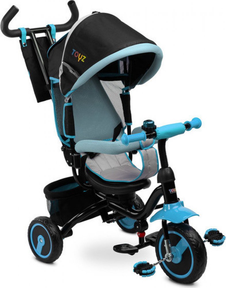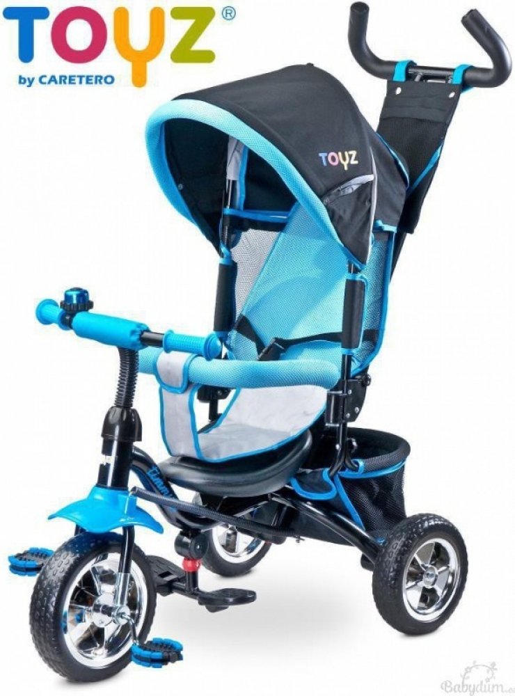Dětská šlapací tříkolka Toyz Timmy. Tříkolka vyrobena z kvalitních a odolných materiálů a je ideální na procházky. Tříkolku může ovládat jak dítě, tak i rodič pomocí rukojeti pro tlačení. Pohodlí během jízdy zajistí opěrka hlavy, pohodlné sedadlo. Pro uložení hraček nebo potřeb pro dítě, je zde úložný košík na zadní straně tříkolky a na řídítkách je zvonek. Krásná stříška ochrání před sluníčkem.