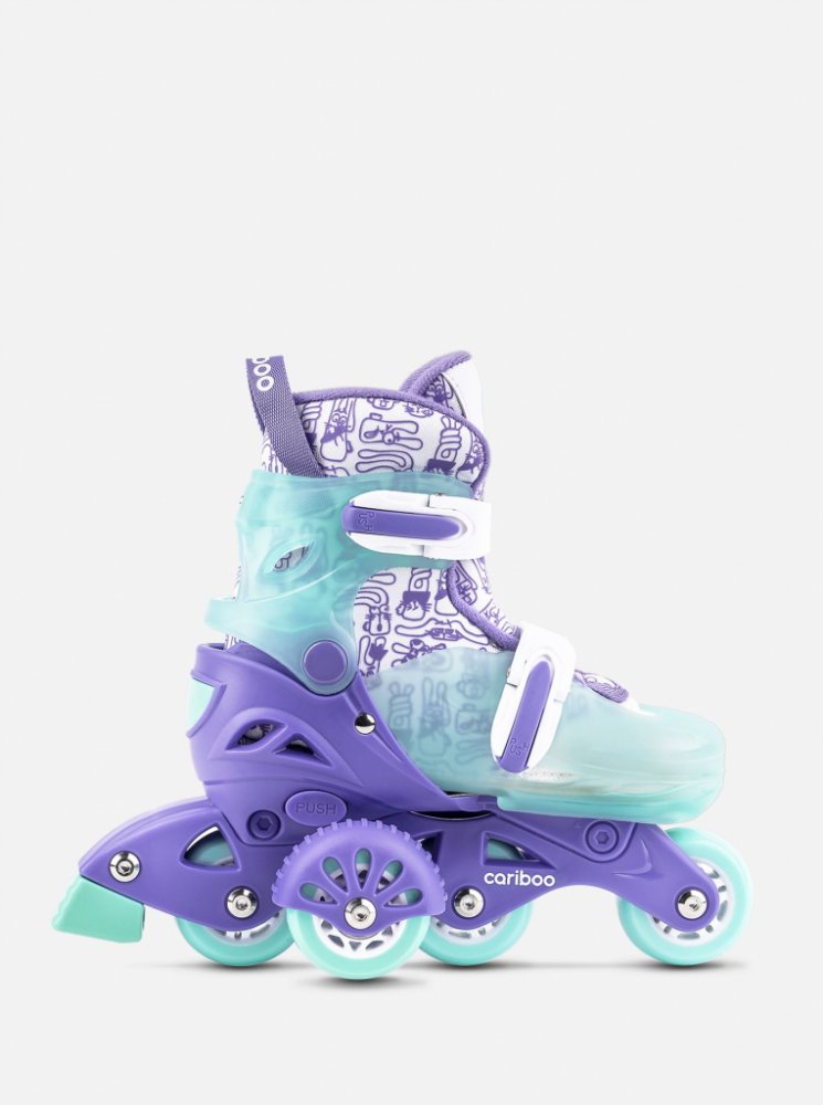 Když si dítě osvojí základy jízdy, boční kolečka lze demontovat. Malý uživatel si pak může vyzkoušet klasické kolečkové brusle. Každý rodič ví, jak rychle rostou děti, a proto mají kolečkové brusle Cariboo snadno ovladatelný systém regulace velikosti. Stačí stisknout jedno tlačítko a poté nastavit správnou délku podrážky boty. Toto řešení umožňuje přesné přizpůsobení velikosti kolečkových bruslí noze dítěte. Díky tomu zařízení roste společně s dítětem, takže Step One vydrží déle než jednu sezónu.