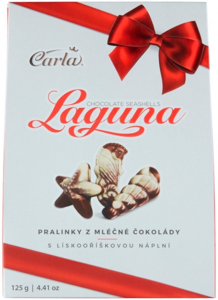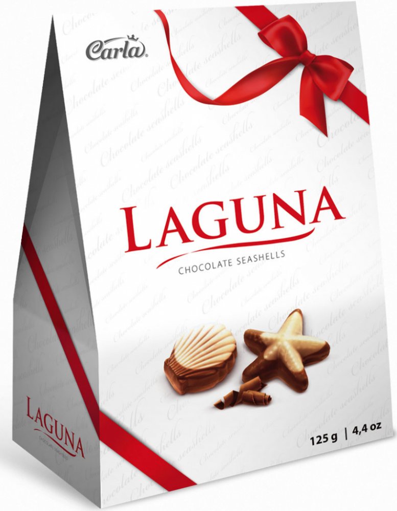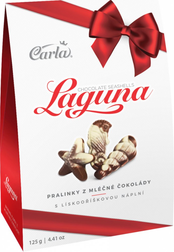 mléčné (30 %) a bílé (15 %) čokoládě. Laguna jsou čokoládové mořské plody,
