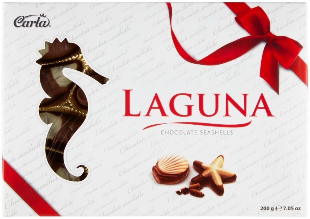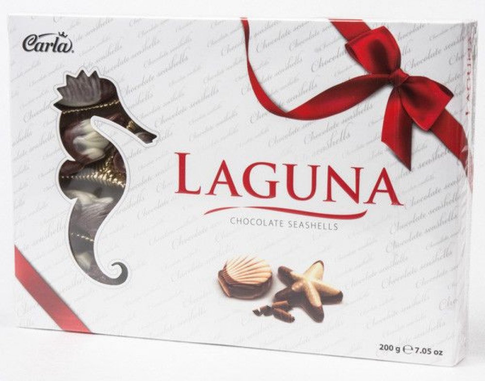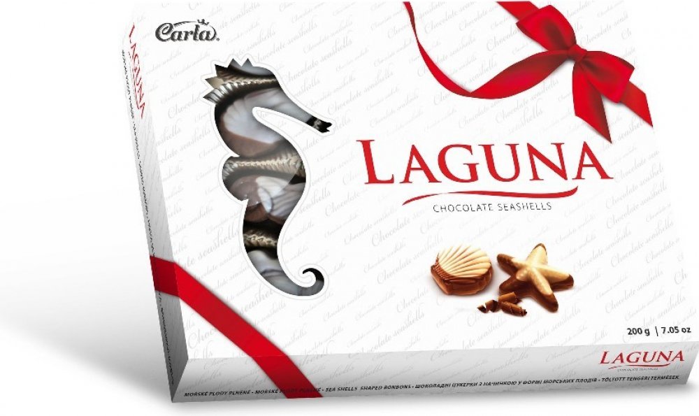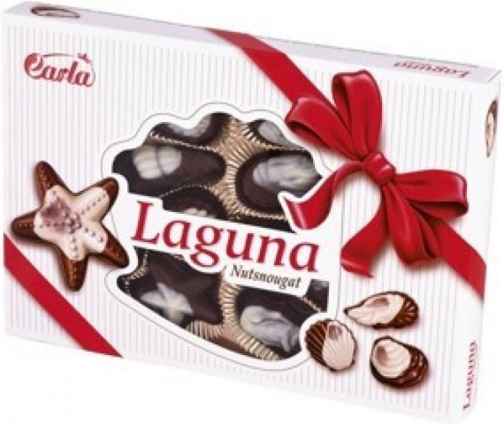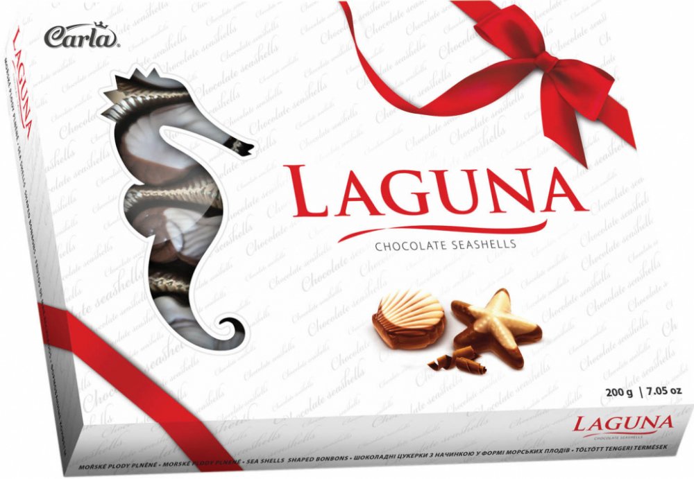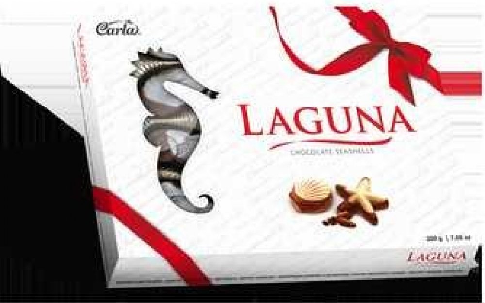 Formované bonbony ve tvaru mořských plodů s lískooříškovou náplní (55 %) v mléčné (30 %) a bílé (15 %) čokoládě. Laguna jsou čokoládové mořské plody, jejichž výroba má ve Dvoře Králové dlouhou tradici. Mají také svou stálou skupinu zákazníků - recepturu jejich oblíbené čokolády připravované pomocí modernizovaných výrobních procesů jsme nyní obohatili o ještě kvalitnější surovinový základ a také jsme osvěžili design obalů. Stávající zákazníky tedy osloví drobné změny a pro nové může být lákadlem vyzkoušet si zcela novou, ryze českou čokoládovou radost.
