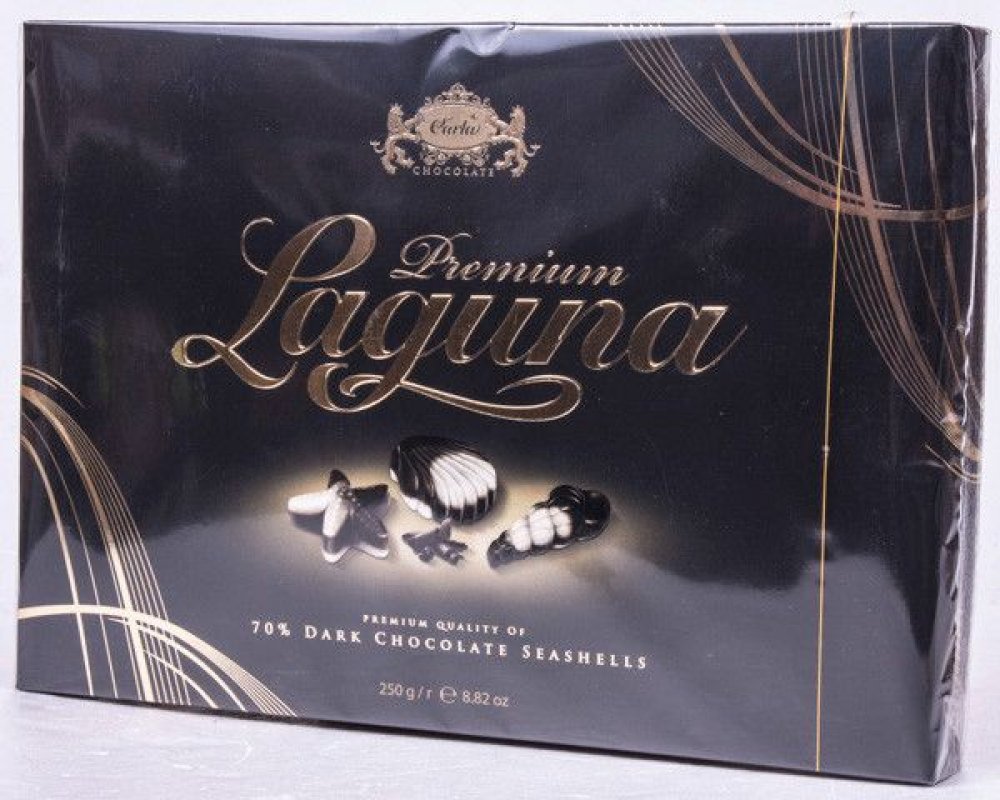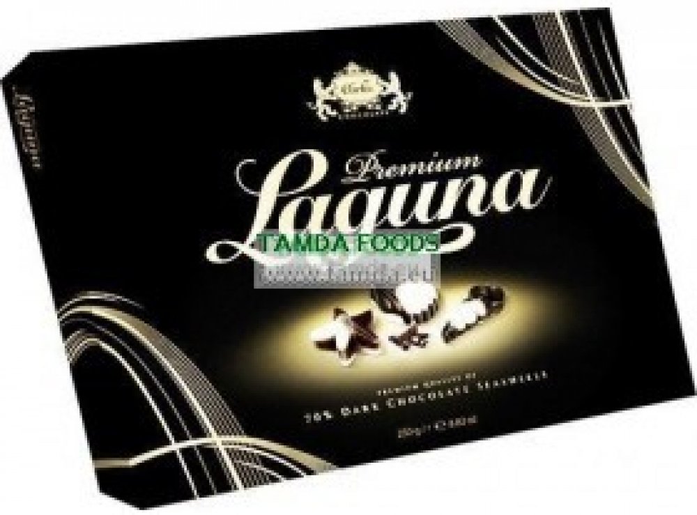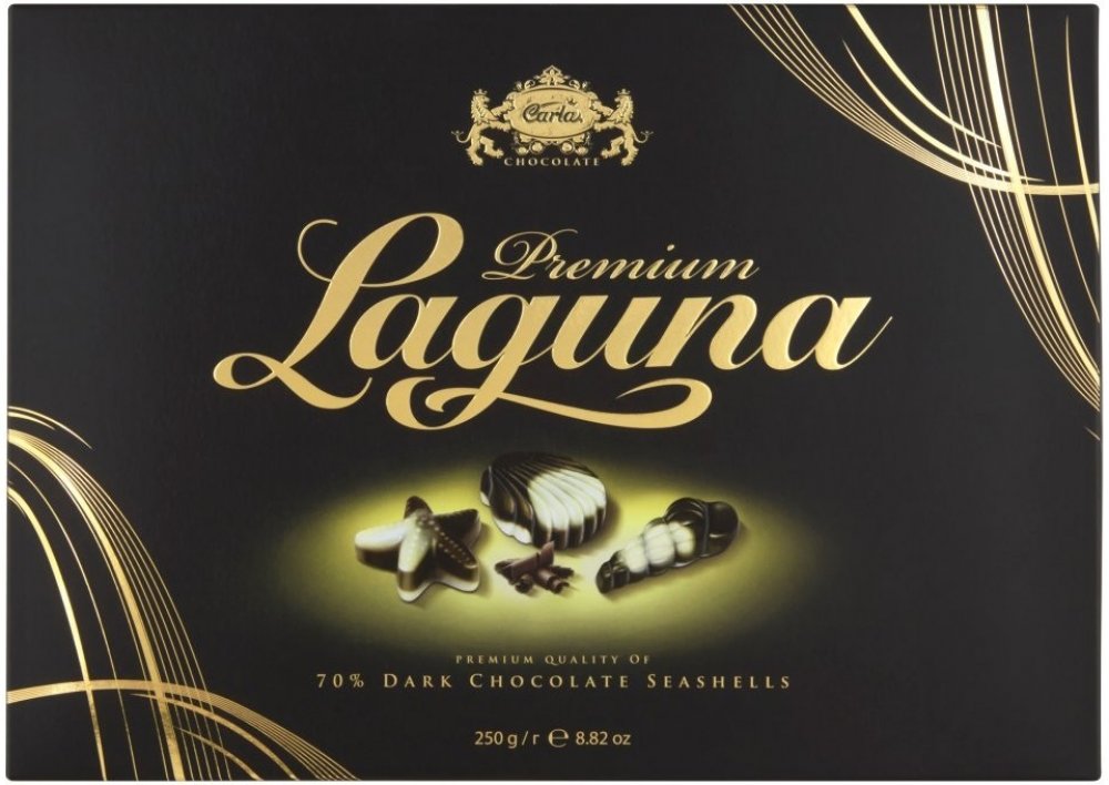 Alergeny jsou ve složení zvýrazněné tučně. Může obsahovat jiné skořápkové plody. Obsah kakaové sušiny v hořké čokoládě min. 70 %, v bílé čokoládě min. 29 %.