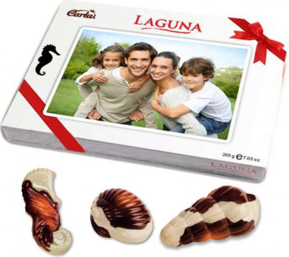Bonboniéra Laguna s oblíbenými bonbóny typu mořské plody a s vlastním potiskem. Bonboniéra Laguna obsahuje 16 bonbonů, tj. 200g. Bonboniéra má obal s Vaším potiskem, který překryje originální krabičku, aby bonbony zůstaly chráněné. Bonbóny samotné nejsou samostatně balené. Velikost přední strany obalu je 230 x 162 mm.