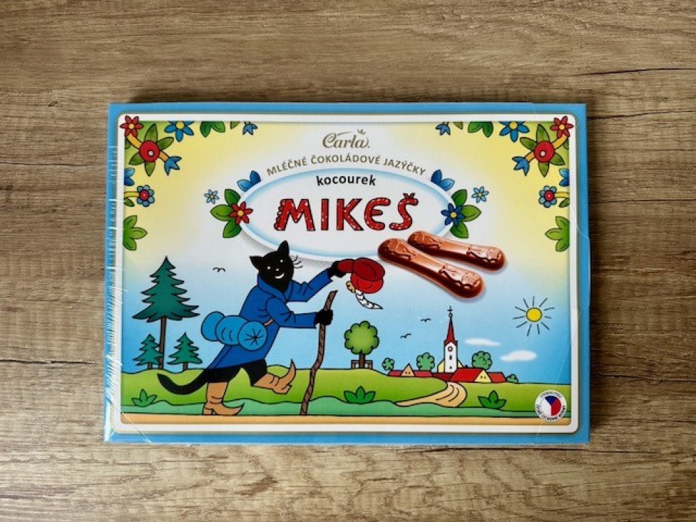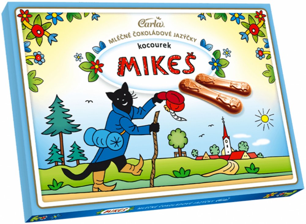 Potěšte děti lahodnou čokoládou od Carly. Mléčné čokoládové jazýčky v dárkovém balení s kocourkem Mikešem budou krásným dárkem i milou pozorností.Kocourek Mikeš jako typicky česká ladovská postavička Vás bude těšit okem i chutí