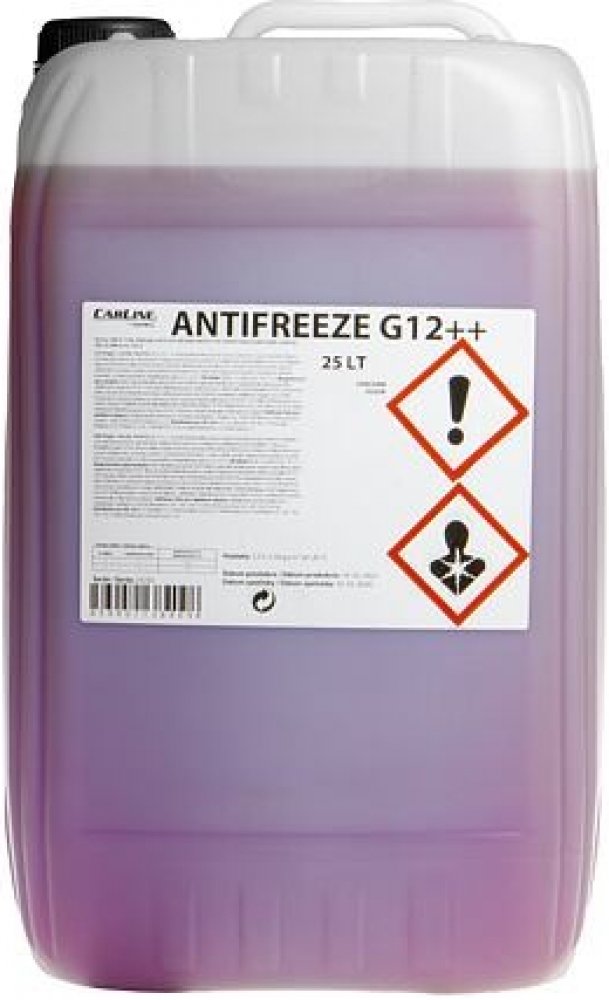 POUZE PRO PROFESIONÁLNÍ POUŽITÍ. CARLINE ANTIFREEZE G12++ se ředí demineralizovanou vodou a používá se pro uzavřené chladicí systémy benzínových, dieselových či plynových motorů osobních a nákladních automobilů. Jedná se o kapalinu typu Si-OAT, která díky svému složení zaručuje dlouhodobou antikorozní ochranu všech kovových součástí chladicího systému vozidla. Její výměnný interval je 5 let, nebo dle doporučení výrobce vozidla (viz servisní manuál). Je volně mísitelná s kapalinami typu G12, G12+. Specif