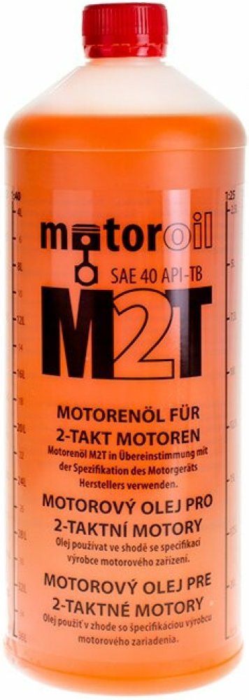 M2T je motorový olej určený výhradně pro mazání dvoudobých zážehových motorů mazaných směsí oleje s benzínem. Mísící poměr dle doporučení výrobce motoru.