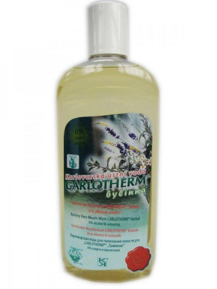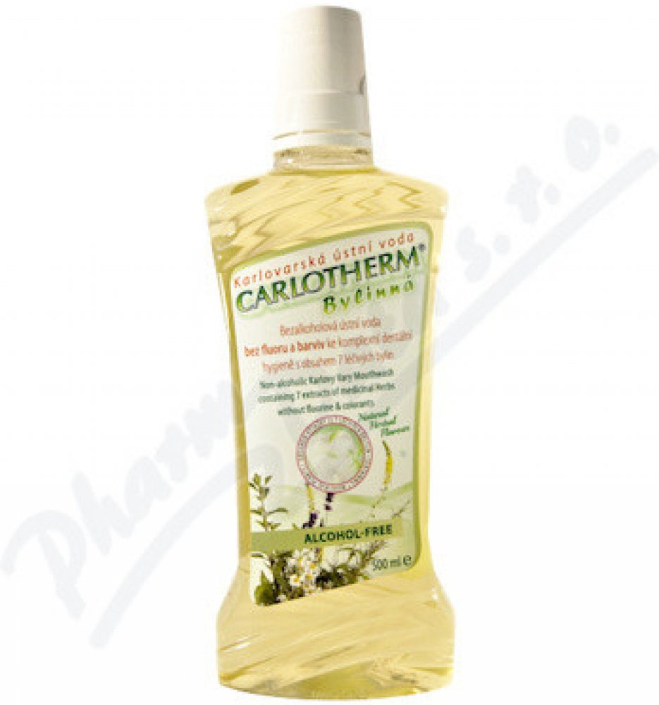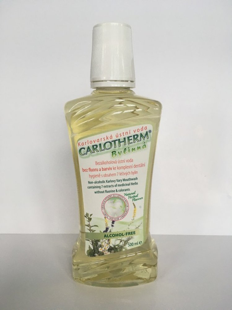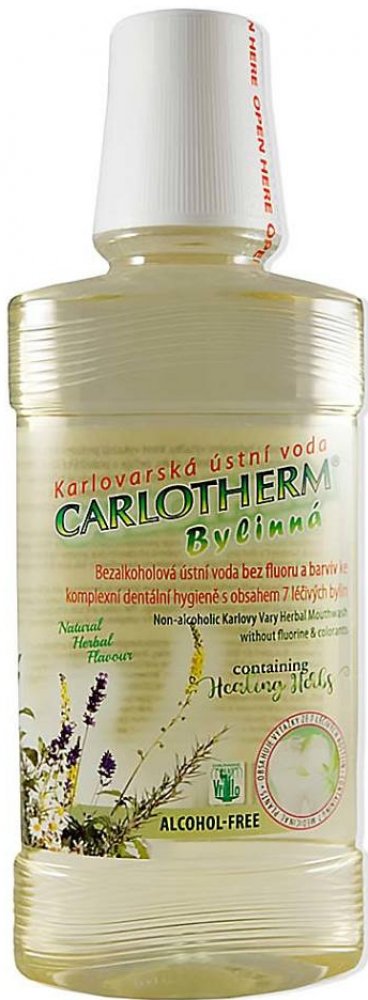 CARLOTHERM Bylinná ústní voda neobsahuje alkohol ani barviva. Obsahuje 7 bylin. Neobsahuje alkohol ani jiná syntetická rozpouštědla a její zabarvení je způsobeno vysokým podílem výtažku z rostlin. Neobsahuje však také ani žádné sloučeniny fluoru, proto je velmi vhodná pro osoby citlivé na tyto látky.Voda má protizánětlivé a antiseptické účinky. Omezuje tvorbu zubního plaku, pečuje o podrážděné dás...