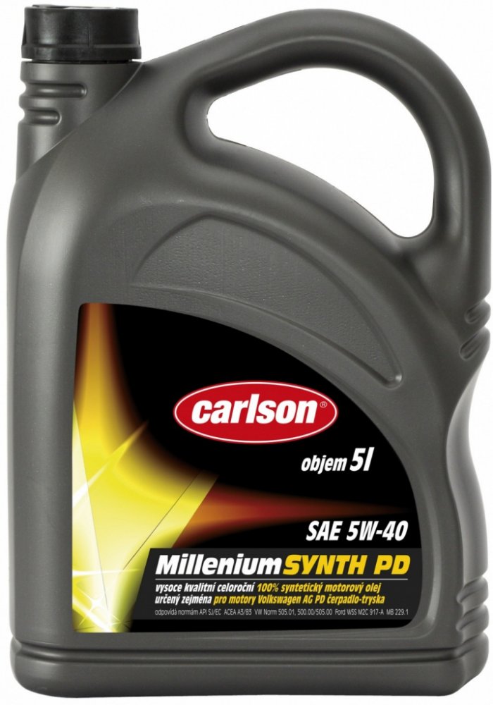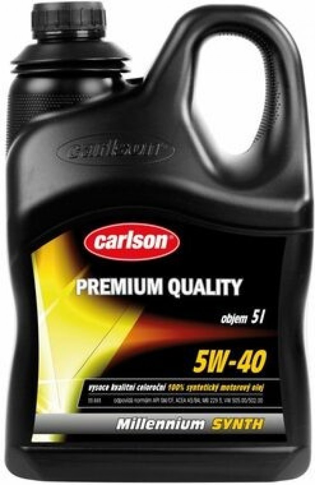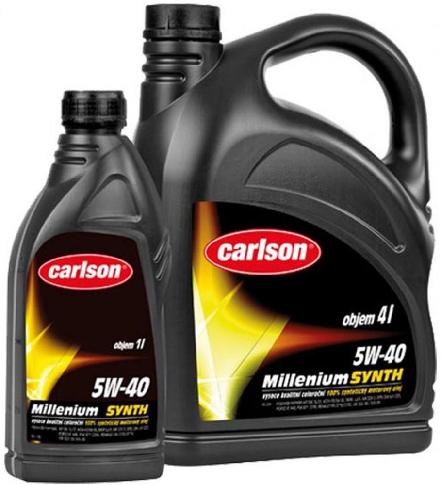 Carlson° Millenium Synth SAE 5W-40 je celoroční plně syntetický motorový olej nejvyšší výkonností. Je určený k mazání moderních benzínových a naftových (i přeplňovaných) motorů osobních automobilů a lehkých užitkových vozidel s mimořádnými požadavky na výkonnost oleje. Je rovněž vhodný pro motory používající jako paliva LPG a pro motory s katalyzátorem výfukových plynů. Svými užitnými vlastnostmi překračuje tento lehkoběžný olej požadavky obvyklých výkonnostních klasifikací. Velmi efektivní je jeho