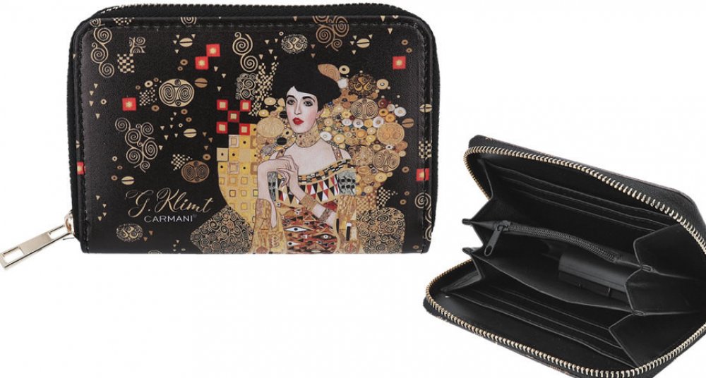 Peněženka Klimt představuje kombinaci stylu a každodenní praktičnosti. Dekor vychází z ikonického portrétu Adele od Gustava Klimta, který symbolizuje eleganci a nadčasovou secesní estetiku. Jemné zlatavé tóny a výrazné detaily dělají z této peněženky nejen praktický doplněk, ale i módní kousek, který upoutá pozornost.