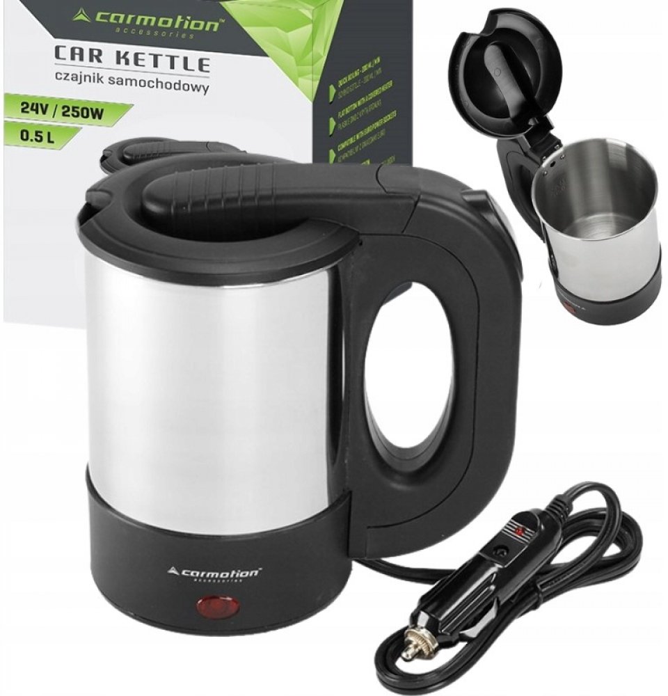 Konvice na stejnosměrný proud (DC) 24 V je určena pro použití ve vozidlech, lodích a při kempování. Lze jej připojit do zásuvek EURO.