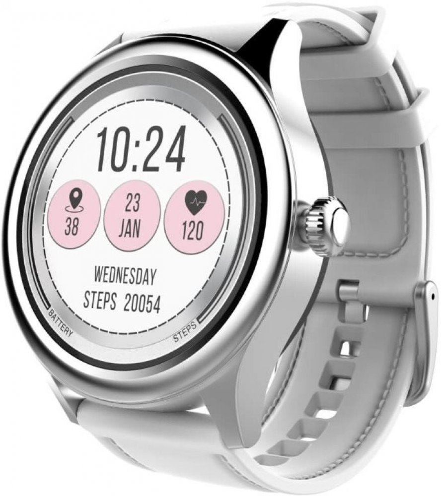 Smart hodinky Carneo Prime GTR v elegantním stříbrném provedení, barevným dotykovým displejem, lze aktivovat pouhým otočením ruky. Kromě běžných „smart“ funkcí disponují také fitness sportovními funkcemi a to vše v elegantním business look provedení. Bílý silikonový řemínek v designu koženého řemínku s prošíváním umocňuje jejich eleganci.