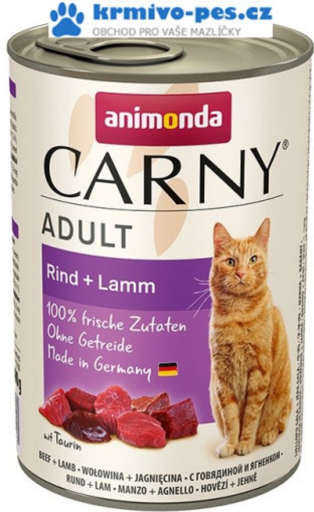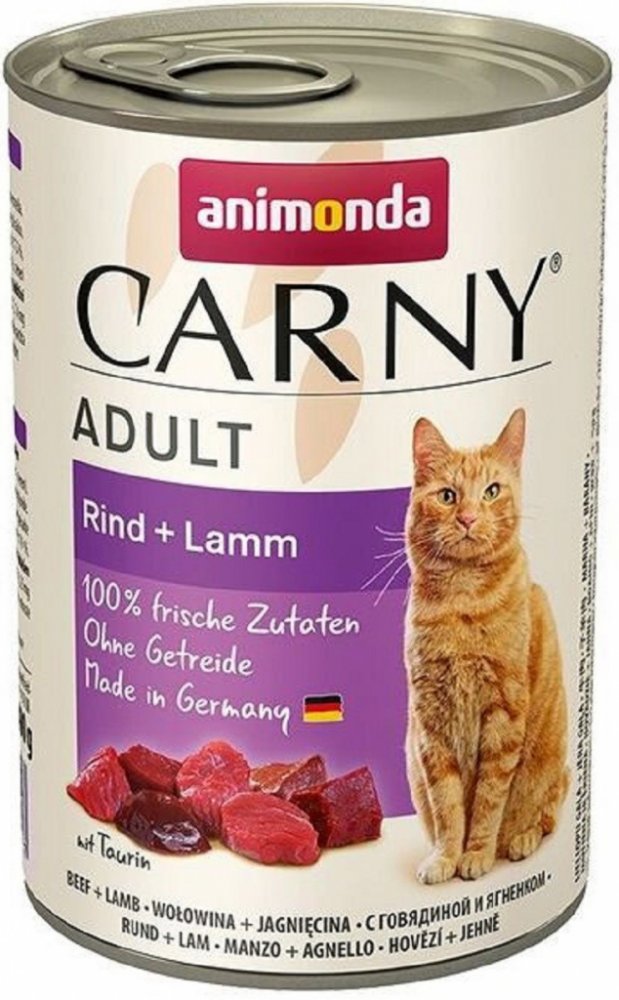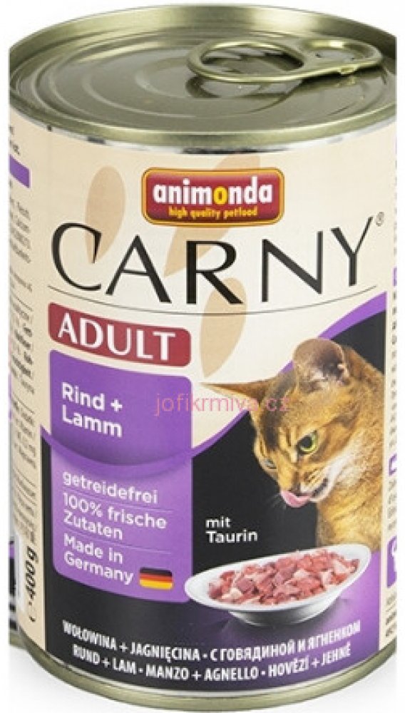 Carny Adult - hovězí a jehněčí je konzerva vyrobená pouze z čerstvých masových částí, které jsou tím pravým pro vaši dospělou kočku. Velikost a tvar masových kousků jsou ideální do úst dospělých koček. Speciálně přizpůsobeno k pokrytí nutričních potřeb dospělých koček.
