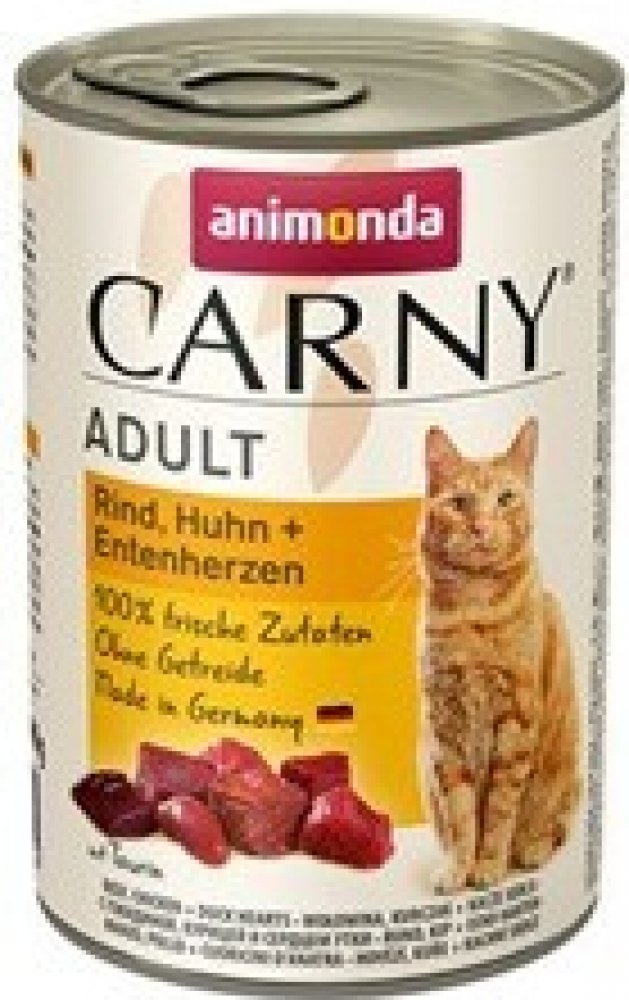 Konzervy Animonda Carny Adult jsou vyrobeny výhradně z čerstvého masa. Obsahují speciální kombinaci antioxidantů, které chrání imunitní systém koček a posilují jejich obranyschopnost. Animonda Carny Adult je vyvážené krmivo, které je přizpůsobeno požadavkům dospělých koček. Bez barviv a umělých konzervantů.