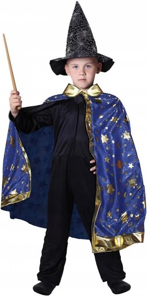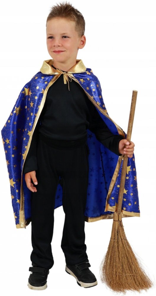 Dětský kouzelnický modrý plášť s hvězdami čarodějnice / Halloween
