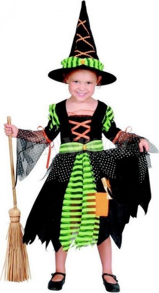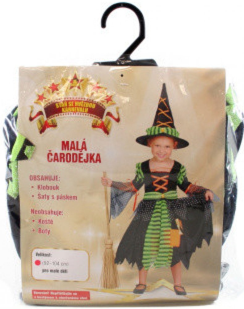 Karnevalový kostým malé čarodějky. Kostým je vhodný pro dívky s výškou 92 - 104 cm.