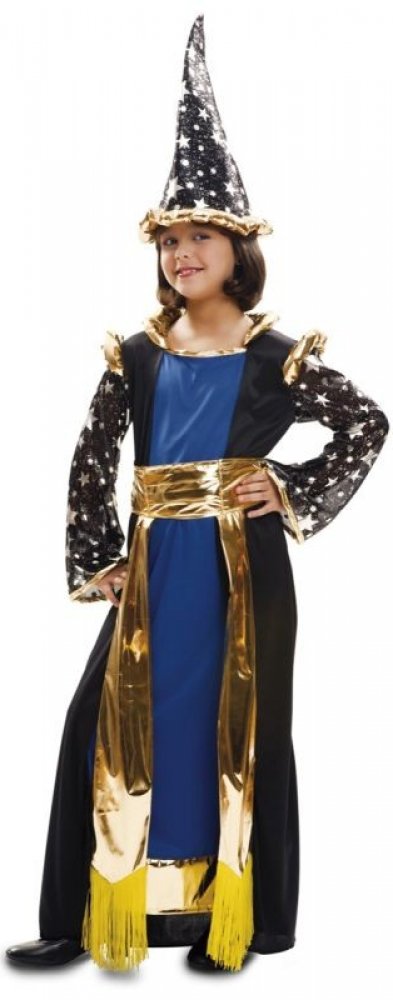 Hledáte ten nejbáječnější kostým na pálení čarodějnic, dětskou party nebo karneval? Zlatá trefa! Tento dětský kostým čarodějnice v elegantní kombinaci černé, modré a zlaté promění každou holčičku v okouzlující malou čarodějku.
