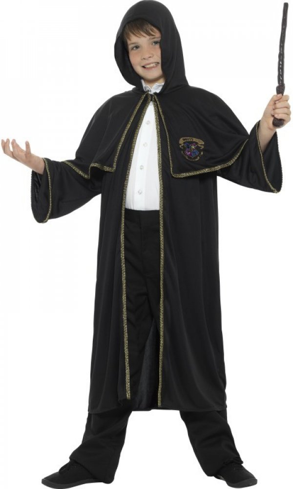 Tento černý kouzelnický plášť je vhodný jako doplněk na party s tématikou Harry Potter.