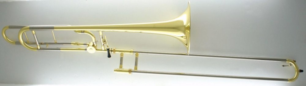 Carol Brass CTB-2227, trombon ( pozoun ) tahový s otevřenou kvartou, mosazné provedení, s pakfonovým snížcem, s pouzdrem.