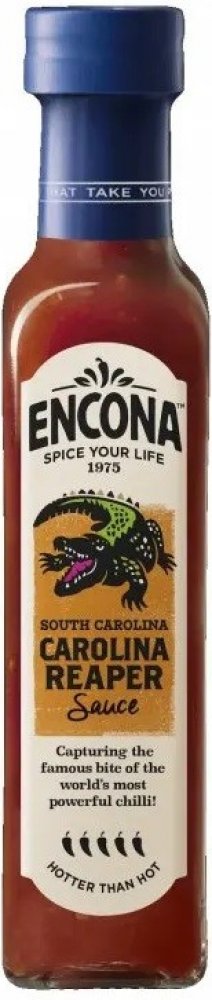 Složení: voda, rajčatová pasta, pálenkový ocet, cukr, Carolina Reaper pyré 5% (chilli papričky Carolina Reaper (88%), sůl), pomerančová šťáva (z koncentrátu), sůl, modifikovaný kukuřičný škrob, papričky Birds Eye (1%), kmín, česnek, konzervační látka: sorbát draselný.