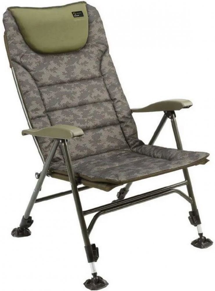Křeslo ve stylu HI-BACK, nově v CAMO provedení, nabízí fantastický komfort a bederní podporu pro ty nejnáročnější. S aretací v několika úhlech a nastavitelností všech noh, je toto křeslo ideální i pro náročné nastavení na březích.