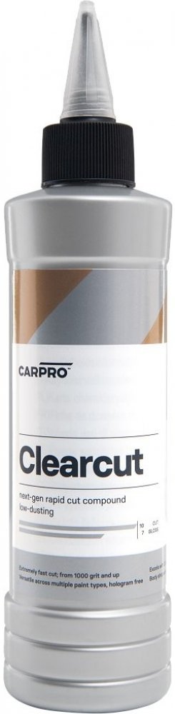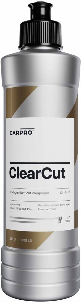 CARPRO ClearCut je vysoce výkonná korekční leštící pasta vhodná zejména pro orbitální leštičky s velkým kmitem. Receptura ClearCutu prošla velmi dlouhým a pečlivým vývojem. Výsledkem je účinná leštící pasta, která pracuje při nízkém tlaku, což je optimální pro orbitální leštičky.