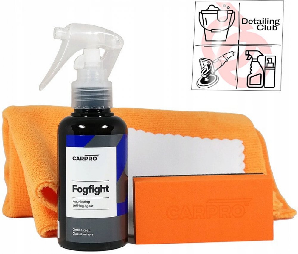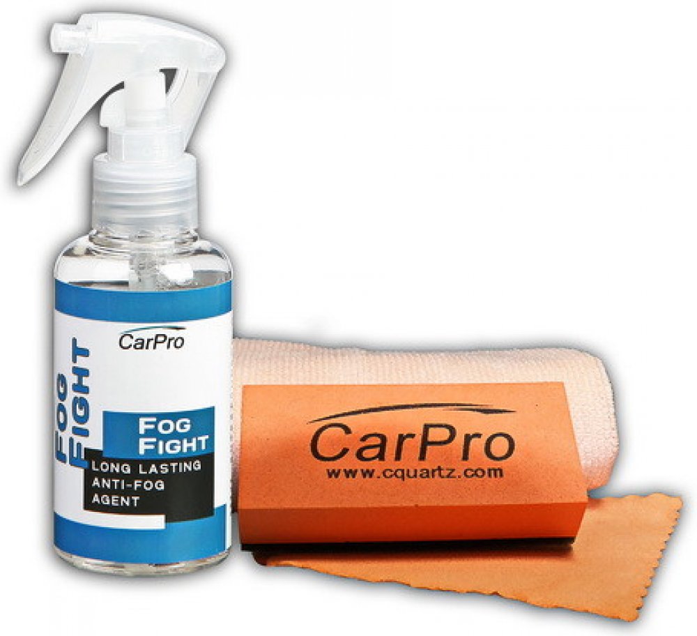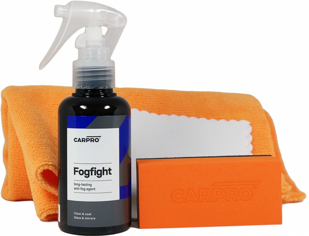 Sada proti mlžení oken CarPro Fog Fight Kit - 100 ml CarPro Fog Fight vytváří hydrofobní povlak na skle, který následně zabraňuje zamlžování. Aplikace přípravku je velmi snadná a rychlá. Nezanechává žádné stopy nebo skvrny. Je bezpečný pro všechny typy skel, plexiskel a optiku. Přípravek má rovněž čistící schopnosti. Jedna aplikace vytváří dlouhotrvající ochranu. Nedotýkejte se, neotírejte a neoplachujte povrch vodou po aplikaci produktu, je třeba nechat vyzrát min. 24 hodin. Sada CarPro Fog Fight Kit obsahuje CarPro Fog Fight, 100 ml CarPro CQuartz aplikátor 2 x aplikační mikrovláknovou utěrku 1 x mikrovláknovou utěrku