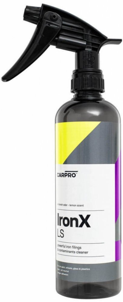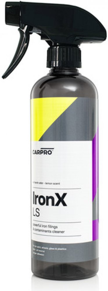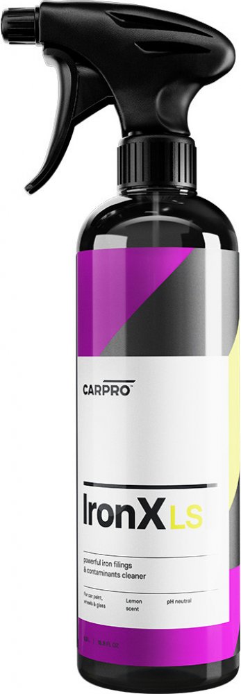Odstraňovač polétavé rzi CarPro IronX Lemon Scent - 500 ml CarPro IronX je roztok na bezpečné odstranění vzdušné koroze (polétavé rzi) z laku, skel a disků kol (odstraňuje hnědý povlak). Po aplikaci reaguje se zkorodovaným železným prachem (při reakci mění barvu na purpurovou) a vytváří tím ve vodě rozpustný komplex, což umožňuje dobře ho vypláchnout a vyčistit hlouběji než při samotném mytí. Apli...