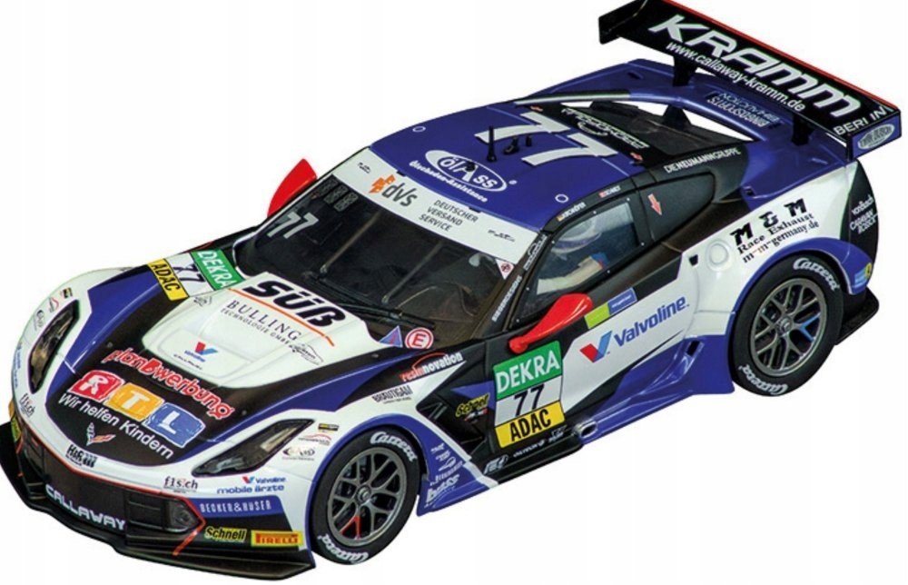 Chevrolet Corvette CT GT3-R "Callaway Competition, No.77" Auto pro autodráhu řady Digital 132 v měřítku 1:32 (31070). Auto obsahuje dvojité kontaktní kartáčky, magnet a vodící lištu. V balení jsou náhradní kontaktní kartáčky, vodící lišta + příslušenství na auto. Funkční přední a zadní světla.. Obrázek je pouze ilustrativní a pro představu, nemusí vyobrazovat aktuálně dostupnou variantu.