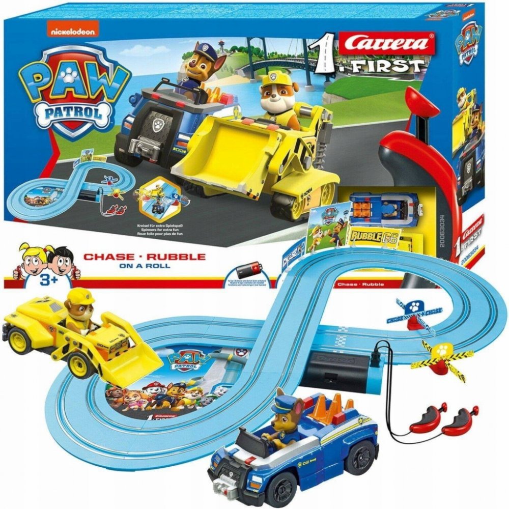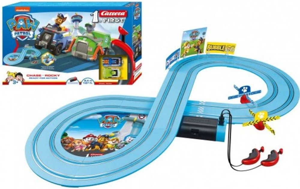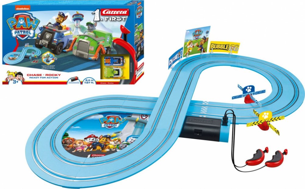 Autodráha First Paw Patrol, včetně dvou závodních autíček je zpracována jako analogová, v měřítku 1:50 a je určená pro nejmenší děti.