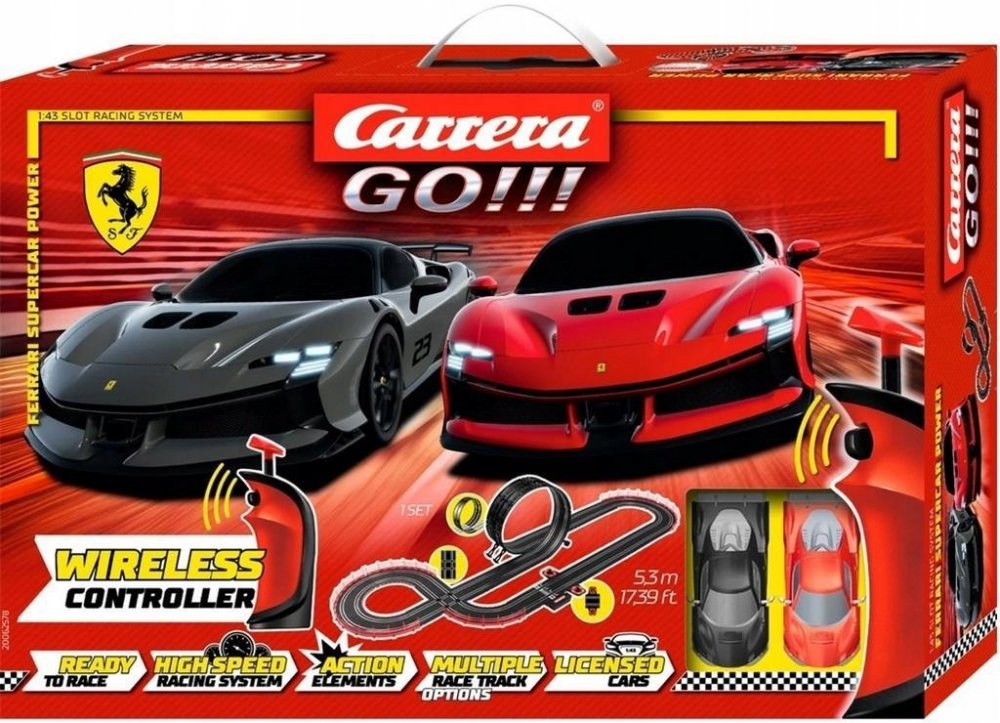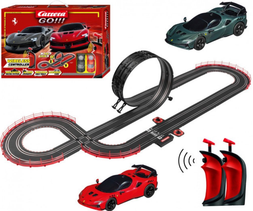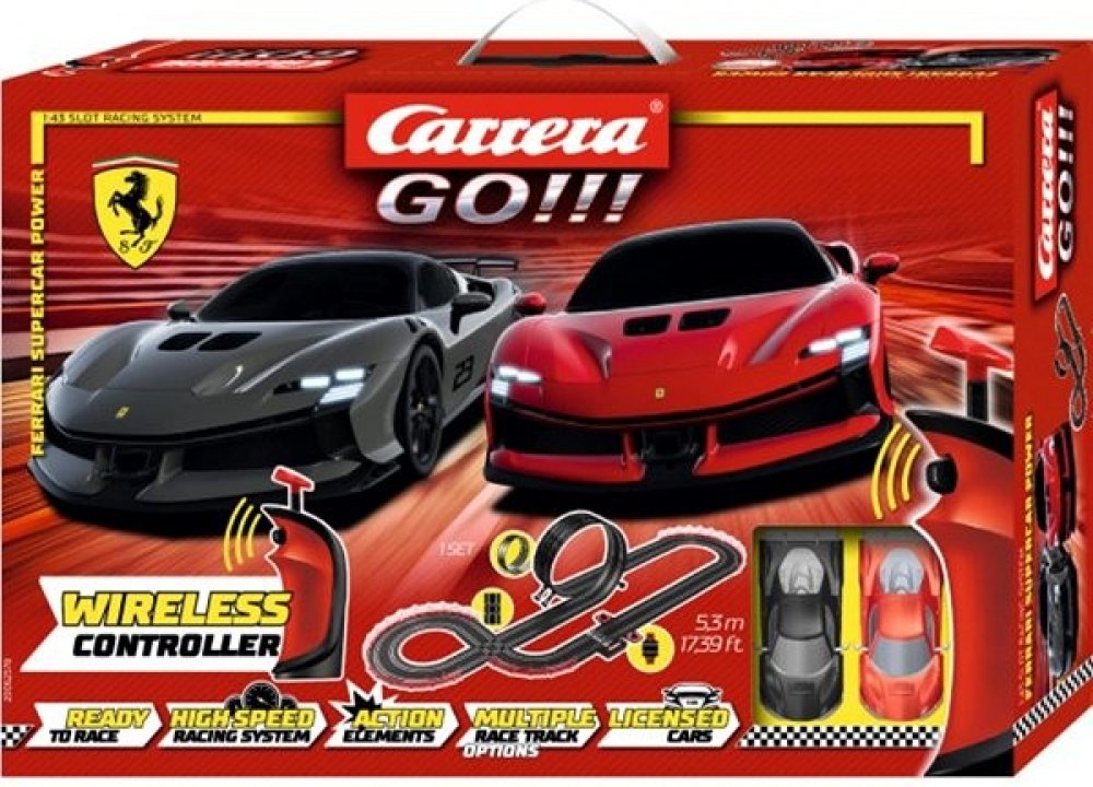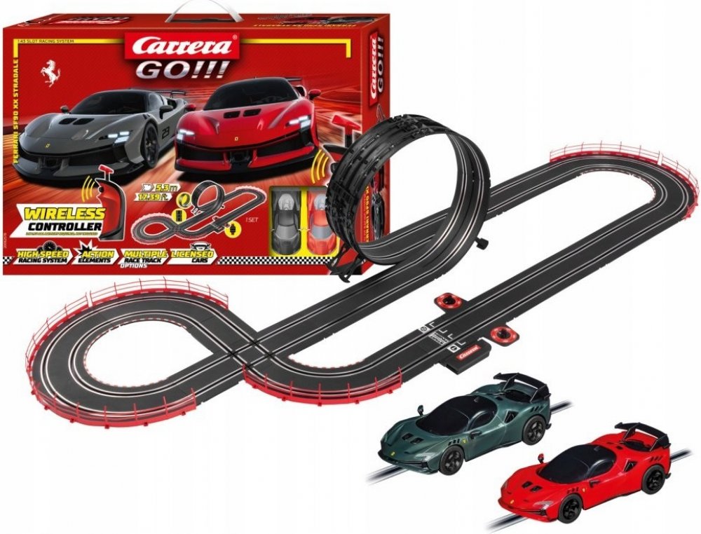 Dráhy se mimořádně snadno montují a rozkládají díky unikátnímu systému spojovacích západek. Auta v soupravě jsou oficiálně licencovaná auta Ferrari. Pozor! Dráhy by se neměly umisťovat na měkké povrchy (tj. koberec, koberec). Sada obsahuje: ▪ závodní dráhu ▪ 2 auta ▪ 2 ovladače