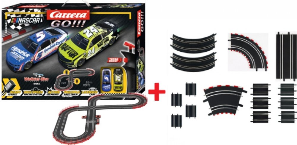 Vstupte do světa NASCAR závodů s autodráhou Carrera GO!!! o délce 3,6 metru. S auty NASCAR Camaro a dráhou, která obsahuje křižovatku, rovinky, zatáčky a díl s počítadlem kol, zažijete opravdové napětí při každém závodu. Tato autodráha je skvělou volbou pro rodiče, kteří hledají zábavnou a bezpečnou hračku pro své dítě. Podpoří kreativitu, koordinaci a nadchne všechny malé i velké závodníky. S tou...