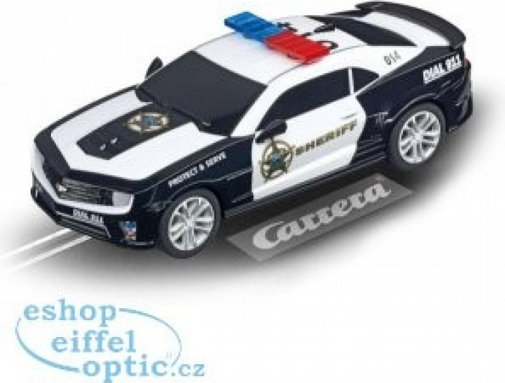 Nejrychlejší na trati! Má vše, co dělá policejní vůz cool, a zároveň je extrémně rychlý: Chevrolet Camaro ''Sheriff'' je nejen elegantní strážce zákona, ale také sportovní vůz skrz naskrz. Když šerif v Chevroletu Camaro šlápne na plyn, padouši se daleko nedostanou. Automobilová honička na závodním okruhu Carrera? Pro Chevrolet Camaro ''Sheriff'' žádný problém. Vzrušující hodiny akce a zábavy při ř...