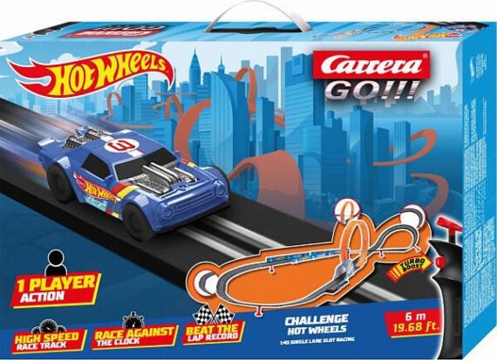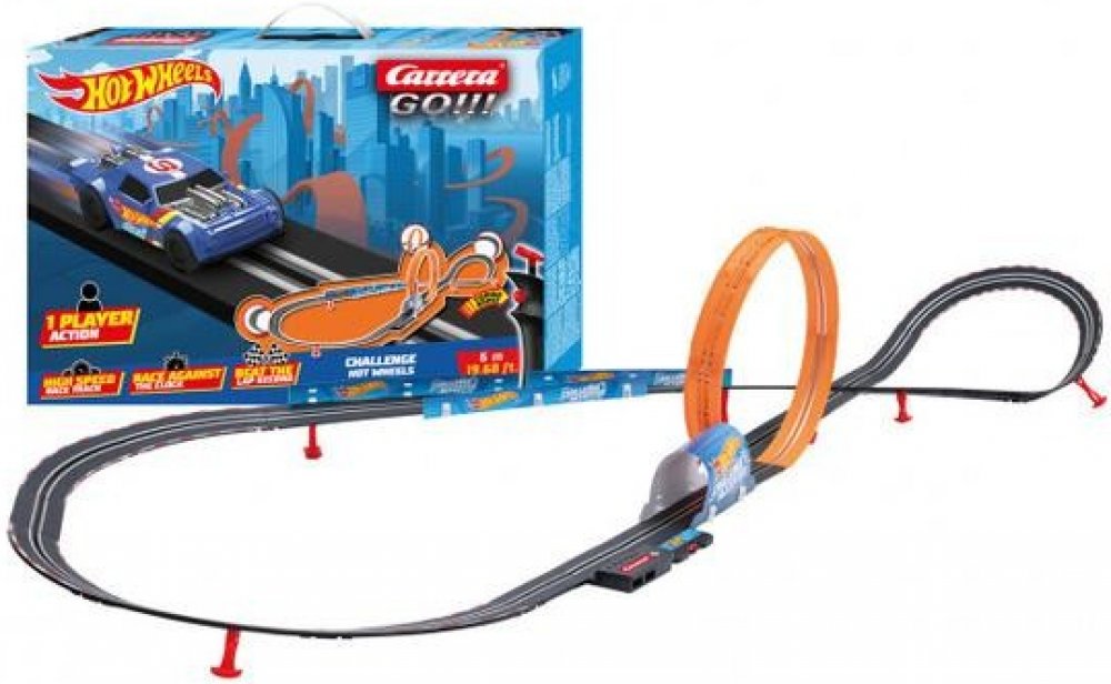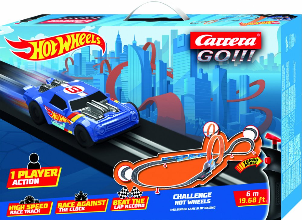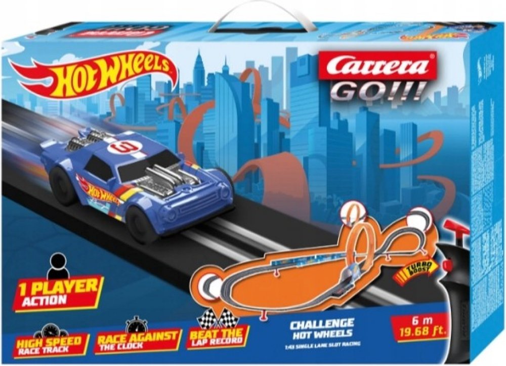 Autodráha Carrera GO!!! dlouhá 6m s autem How Wheels, obsahuje looping, klopenou zatáčku, kolmou zeď, rovinky, zatáčky, díl s počítadlem kol a další díly. Můžete si sestavit další různé tratě dle své fantazie. Jedna dráha, jedno auto, jeden ovladač. Délka tratě : 6 m Rozměry po sestavení : 203 x 75 cm Obsah balení : 1x auto Hot Wheels Night Shifter rovinky kolmá stěna dva loopingy zatáčky, klopené zatáčky 1x napájecí díl 1x díl s počítadlem kol 1x ovladač rychlosti (61663) 1x trafo Podpěry, mantinely, náhradní kontaktní kartáčky, náhradní vodící lišty, návod GO!!! - Turbo rychlost ve světě autodráh Carrera ? měřítko dráhy 1:43 ? měřítko aut 1:43 ? propojení autodráhy s tabletem nebo mobilním telefonem (přes díl 61664 PitStop hry) ? všechny sety jsou vybaveny ovladačem rychlosti s funkcí Turbo ? všechna auta mají dvojité kontaktní kartáčky pro lepší přilnavost k dráze ? všechna auta mají magnet ? díky systému svorek se dráha snadno sestavuje i rozebírá ? přesné a stabilní provedení drah, včetně výškově stavitelných podpěr ? detailní, tamponově potištěná vozidla ? exkluzivní celosvětová licence aut F1 Ferrari, Red Bull ? originální licence Tlapková Patrola, Mimoni, Disney-Pixar Cars, Star Wars, Nintendo, Sonic ? široká nabídka příslušenství (most, počítadlo kol, skokánek, kruhový objezd, rozšiřující sety, rallye díly a další díly pro ještě větší zábavu při závodění ? velmi kvalitní zpracování ? vhodné pro děti od 6 let ? součástí každého setu jsou náhradní kontaktní kartáčky pro auta ? analogový autodráhový systém CARRERA znamená ve španělštině závod a jedno Vám můžeme zaručit. Jakmile rozbalíte krabici s logem Carrera, rozproudí se Vaše závodní krev na nejvyšší otáčky a je jedno na jakém okruhu as jakým autem budete právě závodit. Tento pocit zažívají tisíce fanoušků už od roku 1963, kdy značka Carrera spatřila svou první závodní dráhu. Během následujících více než čtyřiceti let se Carrera probojovala až na úplnou špičku v oblasti autodráh, aut a jejich příslušenství. Dnes nabízí produkty nejvyšší kvality, které jsou určeny nejen dětem, ale také dospělým, pro které se staly autodráhy hobby na celý život.