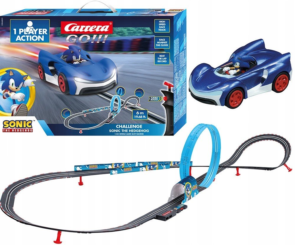 Autodráha Carrera GO!!! dlouhá 6m s autem Sonic, obsahuje looping, klopenou zatáčku, kolmou stěnu, rovinky, zatáčky, díl s počítadlem kol a další díly. Můžete si sestavit další různé tratě dle své fantazie. Jedna dráha, jedno auto, jeden ovladač. Délka tratě : 6 m Rozměry po sestavení : 203 x 75 cm Obsah balení : 1x auto F1 Red Bull Racing Max Verstappen rovinky kolmá stěna dva loopingy zatáčky, klopené zatáčky 1x napájecí díl 1x díl s počítadlem kol 1x ovladač rychlosti (61663) 1x trafo Podpěry, mantinely, náhradní kontaktní kartáčky, náhradní vodící lišty, návod GO!!! - Turbo rychlost ve světě autodráh Carrera ? měřítko dráhy 1:43 ? měřítko aut 1:43 ? propojení autodráhy s tabletem nebo mobilním telefonem (přes díl 61664 PitStop hry) ? všechny sety jsou vybaveny ovladačem rychlosti s funkcí Turbo ? všechna auta mají dvojité kontaktní kartáčky pro lepší přilnavost k dráze ? všechna auta mají magnet ? díky systému svorek se dráha snadno sestavuje i rozebírá ? přesné a stabilní provedení drah, včetně výškově stavitelných podpěr ? detailní, tamponově potištěná vozidla ? exkluzivní celosvětová licence aut F1 Ferrari, Red Bull ? originální licence Tlapková Patrola, Mimoni, Disney-Pixar Cars, Star Wars, Nintendo, Sonic ? široká nabídka příslušenství (most, počítadlo kol, skokánek, kruhový objezd, rozšiřující sety, rallye díly a další díly pro ještě větší zábavu při závodění ? velmi kvalitní zpracování ? vhodné pro děti od 6 let ? součástí každého setu jsou náhradní kontaktní kartáčky pro auta ? analogový autodráhový systém CARRERA znamená ve španělštině závod a jedno Vám můžeme zaručit. Jakmile rozbalíte krabici s logem Carrera, rozproudí se Vaše závodní krev na nejvyšší otáčky a je jedno na jakém okruhu as jakým autem budete právě závodit. Tento pocit zažívají tisíce fanoušků už od roku 1963, kdy značka Carrera spatřila svou první závodní dráhu. Během následujících více než čtyřiceti let se Carrera probojovala až na úplnou špičku v oblasti autodráh, aut a jejich příslušenství. Dnes nabízí produkty nejvyšší kvality, které jsou určeny nejen dětem, ale také dospělým, pro které se staly autodráhy hobby na celý život.