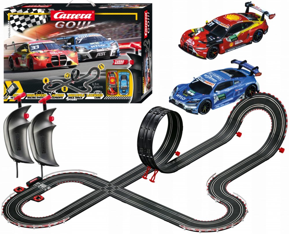 Hra s drahami Carrera je kombinací skvělých emocí, rychlosti a dobré zábavy, která potěší dospělé i děti. Závodění si zamiluje každý kluk a nejedno děvče. Dráhy se mimořádně snadno montují a rozkládají díky unikátnímu systému spojovacích západek. Dráhy by se neměly umisťovat na měkké povrchy (tj. koberec). Sada obsahuje: ▪ závodní dráhu▪ 2 auta▪ 2 ovladače
