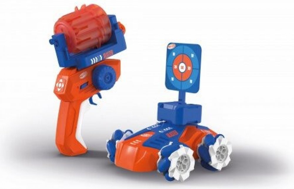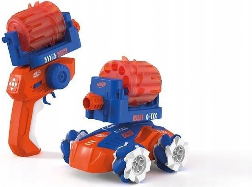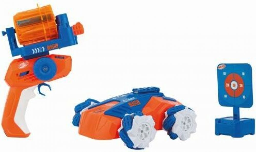 Jeďte a střílejte se slavnými měkkými šipkami Nerf a Carrera RC v autíčku Carrera RC Nerf Blasting Car! Řidiči od 6 let si nasadí blasterovou kazetu s 10 originálními šipkami Nerf, které jsou součástí balení - buď na svého řidiče, nebo na 17,5 cm dlouhé auto - a mohou čelit různým novým výzvám. Součástí balení je také terč, takže pečlivě mířte a zasáhněte cíl z auta. Výzva je ještě těžší, když terč namontovaný na vozidle sviští po místnosti. Auto s licencí Nerf zrychluje až na 7 km/h a jezdí všemi směry na speciálních kolech, když projíždí hernami a ložnicemi.