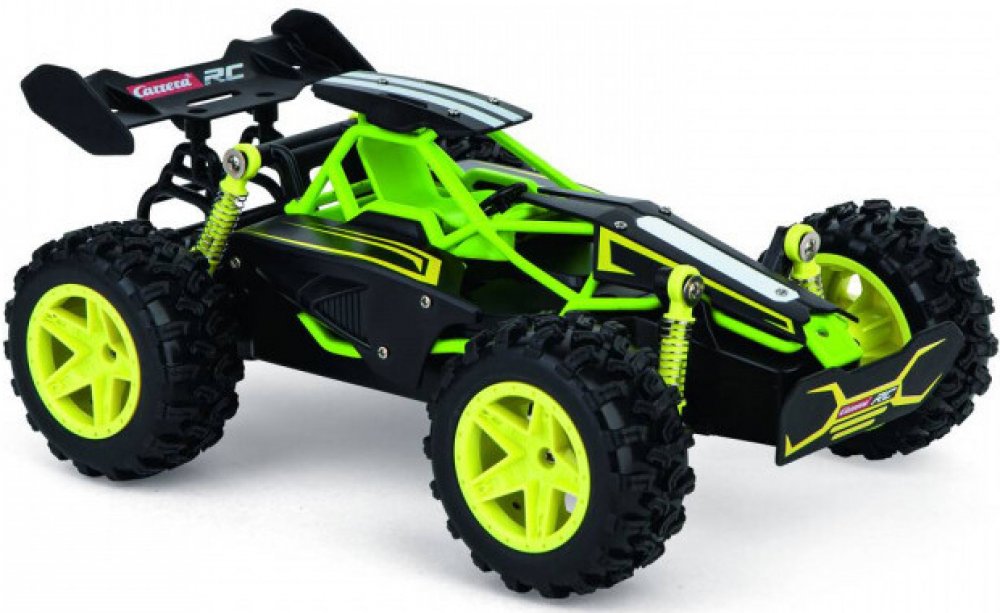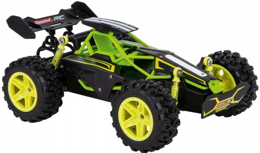 S RC autem Carrera typu buggy si nejen děti, ale také dospělí užijí velkou zábavu. Má vestavěný elektrický stejnosměrný motor a přijímač, kterým přijímá signály pro ovládání. RC auto Carrera je vyvedeno v měřítku 1:20 a hodí se pro vnitřní využití. Jakmile se pustí do akce, dosahuje nejvyšší rychlosti až 12 km/h. Pohon na všechna čtyři kola, tzv. 4WD (Four-Wheel Drive), se postará o větší kontrolu...