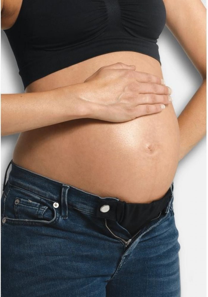 Těhotenský externí nastavitelný pás. Snadno nastavitelný pás, který udělá z bežných kalhot a sukní těhotenské oblečení. Těhotenský externí nastavitelný pás. Snadno nastavitelný pás, který udělá z bežných kalhot a sukní těhotenské oblečení.Balení obsahuje černý, modrý a bílý látkový díl z přírodní bavlny a elastický, nastavitelný pásek s kovovým zapínáním neobsahující nikl.Lze prát na 40 stupňů.