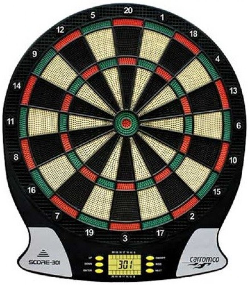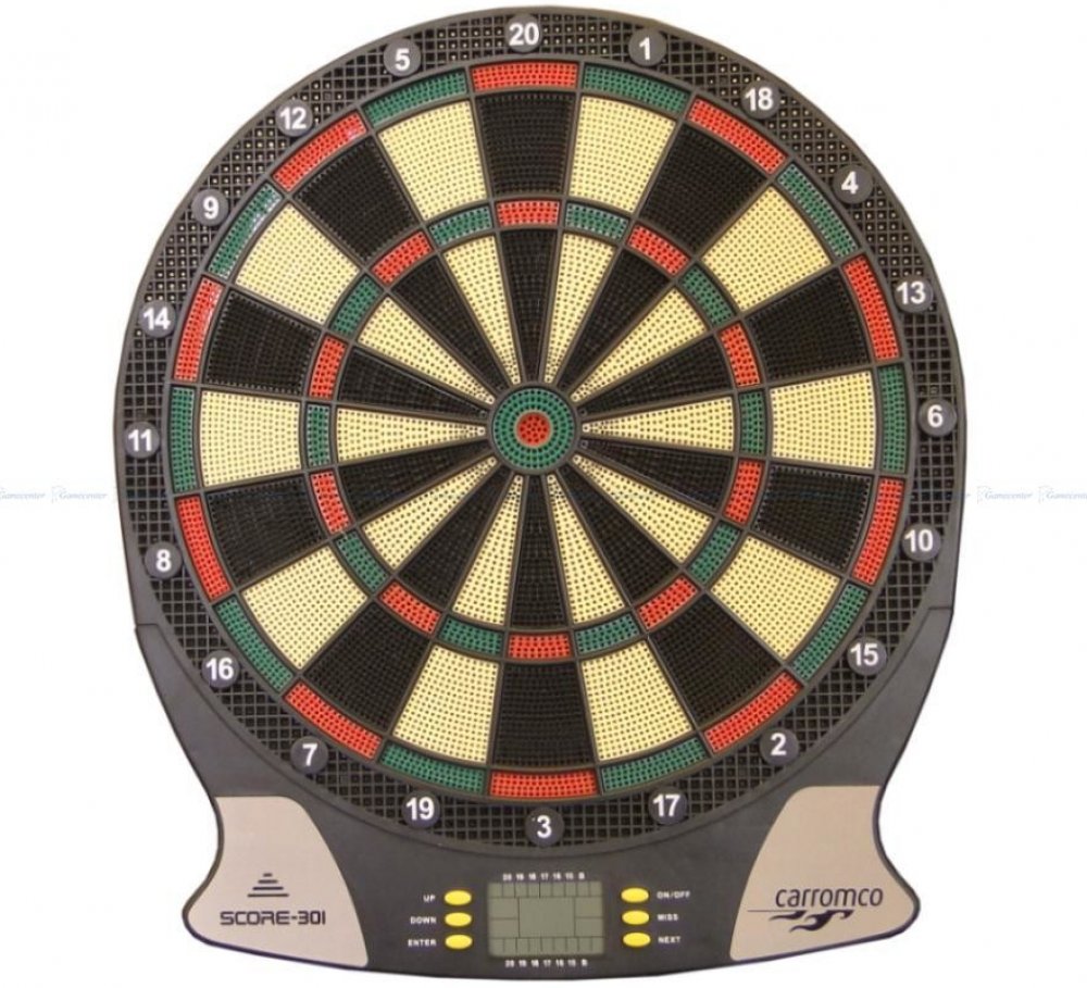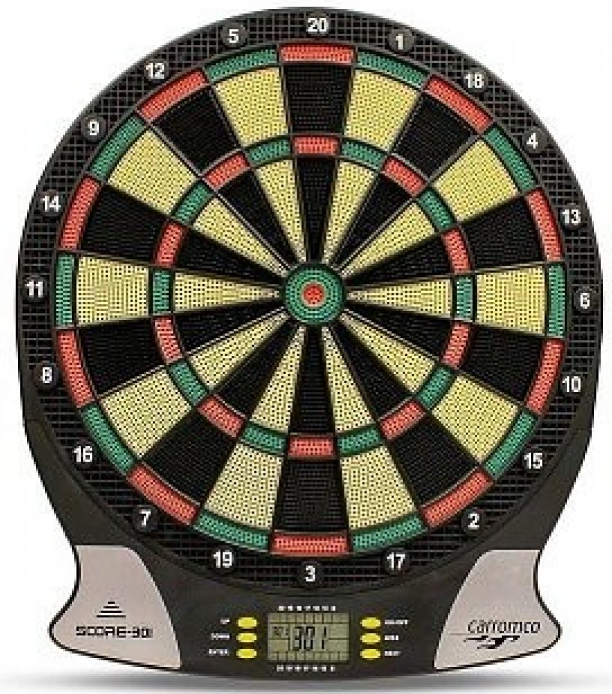 Moderní elektronický terč na šipky německé firmy Carromco pro 1 až 8hráčů. Terč nabízí 26 her s 523 variantami s možností hry jednoho hráče proti počítači. Potřebné údaje zobrazuje přehledný LCD displej a nastavitelné zvukové efekty. Napájení na 3x AA baterie. Mezi další přednosti terče patří možnost nastavení handicapu, automatické vypínání po 10 minitách nečinnosti a bohaté příslušenství v ceně.