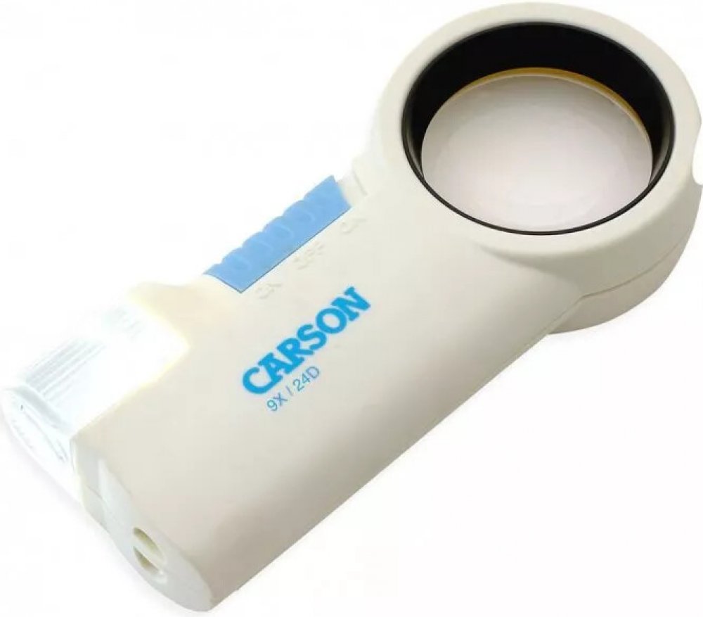 Má asférickou čočku s 9x zvětšením o průměru 38 mm. Obraz je jasný, čistý a nezkreslený (není oblý apod). K jeho jasnosti přispívá i LED osvětlení. Osvětlení a baterka jsou na 3 AAA baterie (nejsou součástí balení). Toto zvětšení je výrobcem garantováno po celé ploše čočky.