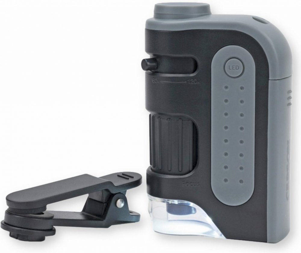 Mikroskop Carson MicroBrite Plus LED 60-120x s klipem je kompaktní nástroj, který poskytuje výkonné zvětšení 60-120x. Vestavěná LED dioda svítí na obraz, který je sledován. Výhodou je klip pro digiscoping, který umožňuje připevnit mikroskop k většině mobilních telefonů, což vám umožní fotografovat nebo natáčet pomocí fotoaparátu v telefonu.