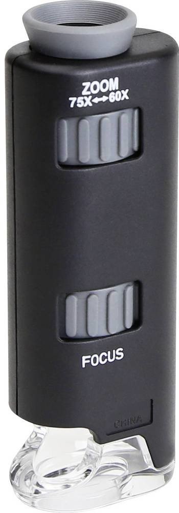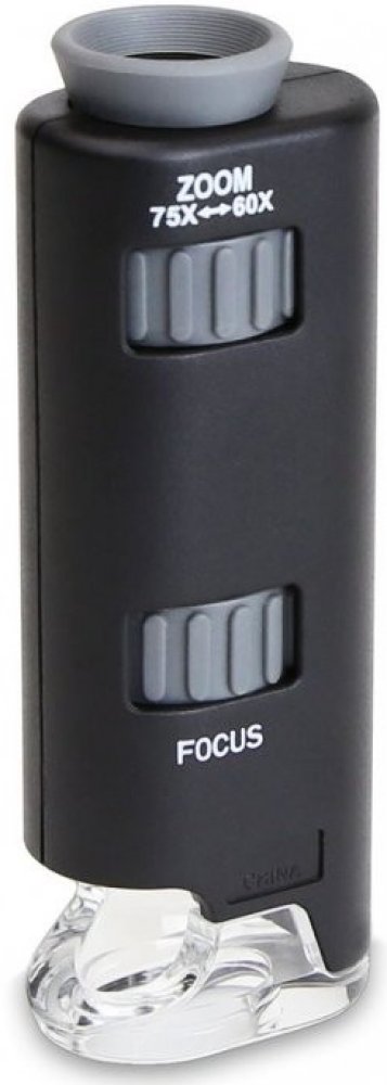 MM-200 n MicroMax je velmi lehký a přenosný mikroskop. Zabudované LED osvětlení poskytuje velmi jasný a čistý obraz zkoumaného předmětu (baterie jsou součástí balení). Kapesní mikroskop 60-75xCarson MM-200n s LED Kapesní mikroskop MM-200 n od firmy Carson je velice kompaktní a skladný pomocník při pozorování mikrosvěta. Zabudované LED osvětlení poskytuje velmi jasný a čistý obraz zkoumaného předmětu (3 knoflíkové baterie jsou součástí balení). Pogumovaná očnice zajišťuje komfort při zkoumání. Pomocí dvou kroužků nezávisle na sobě nastavíte zvětšení (označeno "zoom") a ostrost obrazu (označeno "focus"). Kroužkem "zoom" nastavíte ohniskovou vzdálenost, která určuje zvětšení. Otáčením kroužku zvětšíte objekt 60x - 75x. Kroužkem "focus" nastavíte jasnost a ostrost obrazu. Jednoduše otáčejte kroužkem tak dlouho, až budete vidět pozorovaný objekt naprosto ostře. Zvětšení: 60-75x Baterie: 3x knoflíkové (součástí dodávky-na odzkoušení) Osvětlení: LED