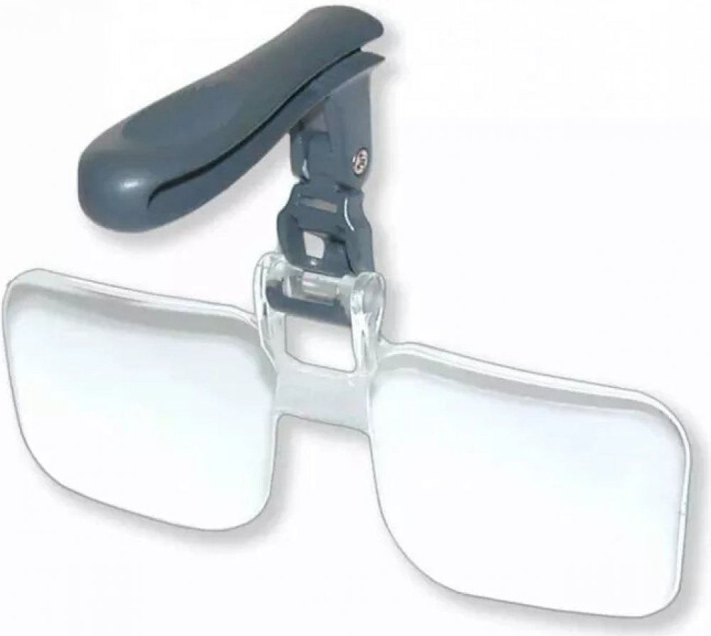 Klip drží na všech typech kšiltovek nebo čepic s kšiltem - jednoduše klip zasunete na kšilt a pomocí kloubu sklopíte lupu přeš brýle. Ve chvíli, kdy lupu nepotřebujete, stačí lupu jen odklopit.
