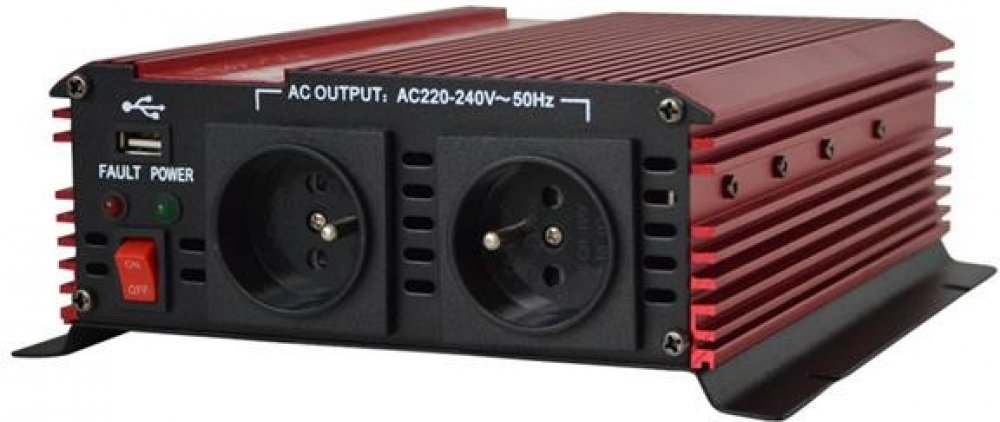 - Výstupní napětí: 230VAC (50Hz), modifikovaný sinus