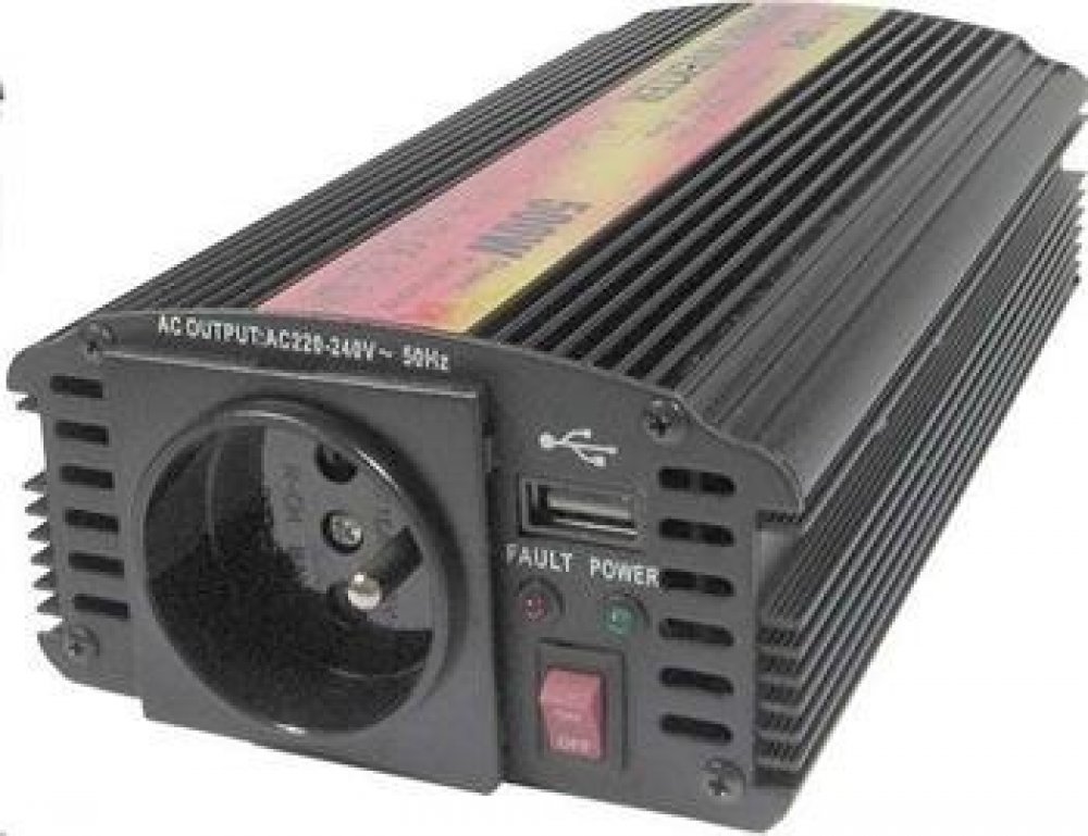 Je potřeba rozlišit, pro jaký typ spotřebiče se bude měnič používat, a podle toho stanovit jeho správný výkon!• Pro asynchronní motory (oběhová čerpadla, okružní pily, frézky, malé soustruhy apod.) by měl být výkon měniče 6 – 8 x vyšší než je trvalý max. provozní příkon spotřebiče. Např. oběhové čerpadlo 65W – měnič 600W.• Pro motory s komutátorem (ruční elektrické nářadí, jako vrtačky, flexy, ruční okružní pily, brusky, dále vysavače apod.) by měl být výkon měniče 2,5 – 3 x vyšší než trvalý provozní příkon připojovaného spotřebiče. Např. bruska 550W - měnič 1600W – motor, může vrčet.• Pro spotřebiče se spínaným napájecím zdrojem (notebooky, PC, servery, nabíječky apod.), by měl být výkon měniče 2 x vyšší než je trvalý příkon spotřebiče. Např. notebook 140W – měnič 500W.• Pro napájení rychlovarné konvice, bojlery, mikrovlnné trouby, žárovky by měl být výkon měniče 3 x vyšší než je trvalý příkon spotřebiče. Např. mikrovlnná trouba 850W - měnič 3000W.• Pro lednice a mrazáky, spotřebiče s kompresorem, by měl být výkon měniče 15 – 20 x vyšší než příkon spotřebiče. Tedy pro 100W lednici se doporučuje min. 1500W měnič. Důvodem je kompresor, který má při náběhu vysoké startovací/rázové proudy po relativně dlouhou dobu, na což již výkonová špička měniče není schopna reagovat.Měnič napětí Carspa CAR500U 12V/230V 500W, USB, modifikovaná sinusovka