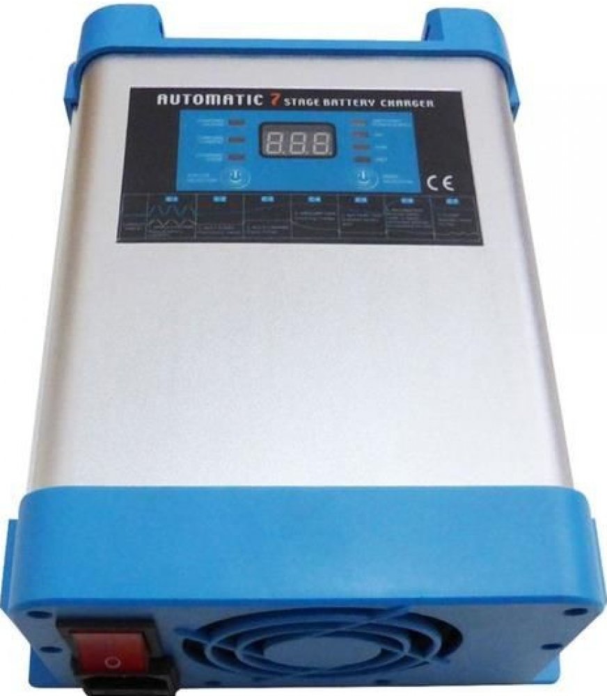 Nabíječka Pb akumulátorů CARSPA EBC1240, 12V/40, s automatikou. Inteligentní automatická nabíječka olověných akumulátorů se sedmistupňovým automatem, určená rovněž pro trvalé spojení s nabíjenou baterií. Vhodná pro záložní zdroje, karavany, ostrovní FV systémy apod.