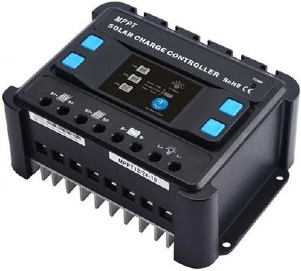 Tento solární MPPT regulátor využívá inovativní technologie s účinnost převodu až 99%. Regulátor zobrazuje provozní data a pracovní stav řídicí jednotky na předním panelu. Disponuje samozřejmě také plně automatickou funkcí elektronické ochrany. Technické parametry: - systémové napětí: 12 V / 24 V automatické rozpoznání - maximální nabíjecí proud: 10 A - PV napětí: 10-40V/ 20-65V - ochrana proti PV přepětí: 65V - efektivita MPPT: 99% - typy baterie: 12V nebo 24V dobíjecí olověné baterie (AGM, GEL) / LIthium-železo fosfátové baterie - spotřeba energie v pohotovostním režimu: