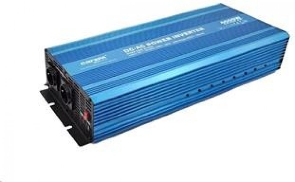 Měnič napětí 12V/230V 4000W, CARSPA P4000, čistá sinusovka. Měnič je vhodný pro spotřební elektroniku, nářadí i jiné spotřebiče s nároky na čistý sinusový průběh výstupního napětí. Technické parametry: - jmenovitý výkon: 4000 W - špičkový výkon: 8000 W (5sec) - výstupní napětí: 230 V/ 50 Hz, čistá sinusovka - výstup USB: 5 V/ 2,1 A - vstupní napětí: 12 V/ max.340 A - ochrany: proti přepětí, podpětí, přetížení, zkratu, tepelná - LED indikace chybových stavů a ochrany - rozměry: 550 × 295 × 180 mm - hmotnost: 9 kg