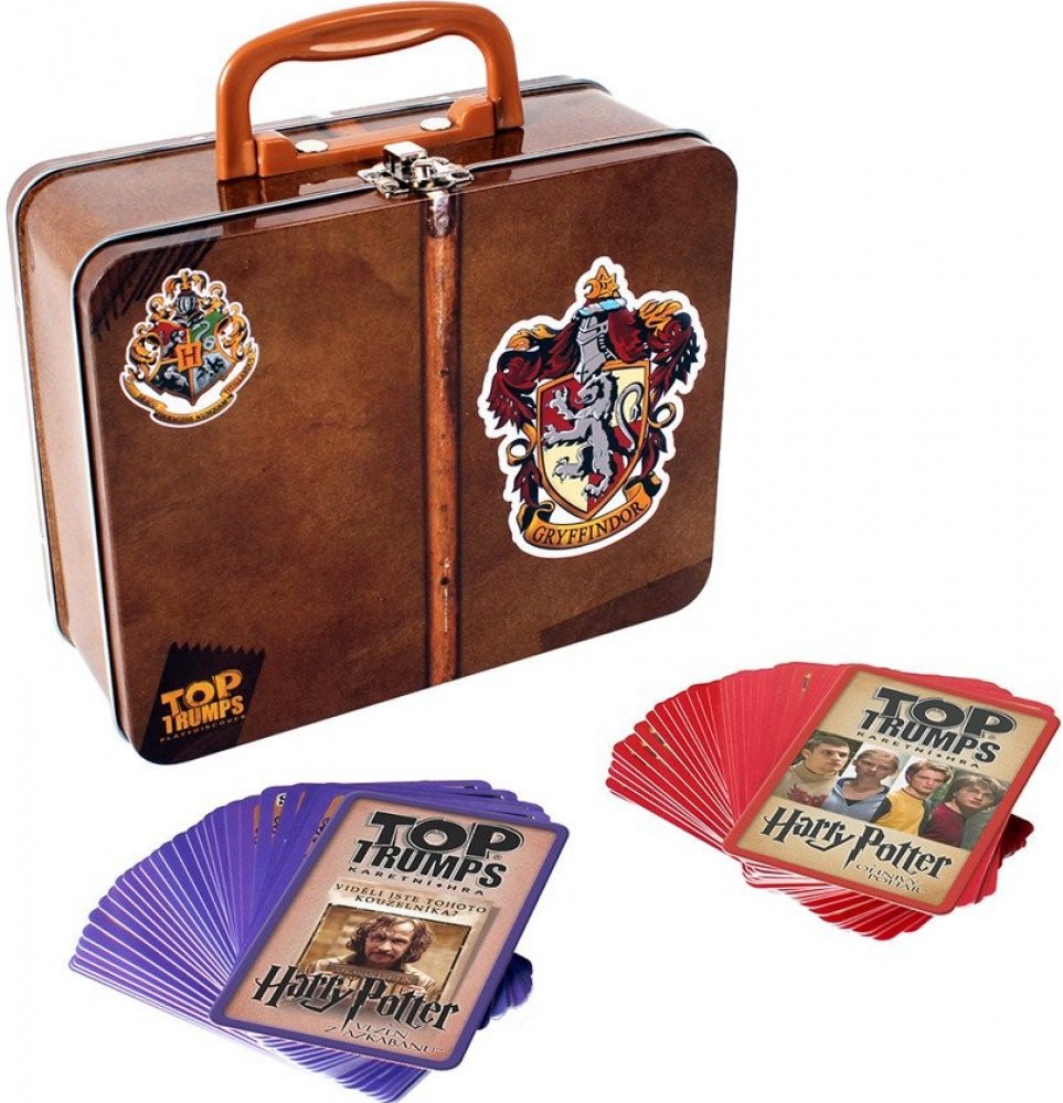 Hru může hrát libovolný počet lidí, nejméně však dva. Top Trumps Battle má více verzí a často je dodáván s oblíbenými licencemi. Vezměte si Bradavický expres s kovovým nebelvírským kufrem. Tato exkluzivní edice obsahuje dva balíčky karet Top Trumps: Harry Potter a Ohnivý pohár a Harry Potter a vězeň z Azkabanu ve sběratelském plechu. Vydejte se po stopách svých oblíbených bradavických studentů. I vy můžete hrát svůj Turnaj tří kouzelníků, nečekejte a podívejte se, která postava má největší mazanost, odvahu nebo moudrost. Bojujte proti vlastnostem, posbírejte všechny karty a vyhrajte!